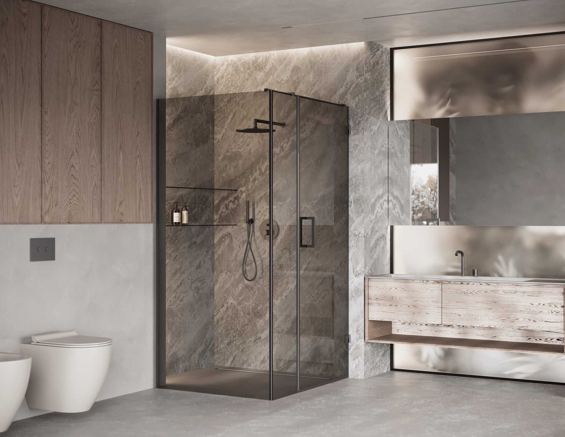 Die MARCEL-Kabine ermöglicht dank ihres Designs die Installation nicht nur auf der Duschwanne sondern auch direkt auf dem Boden.