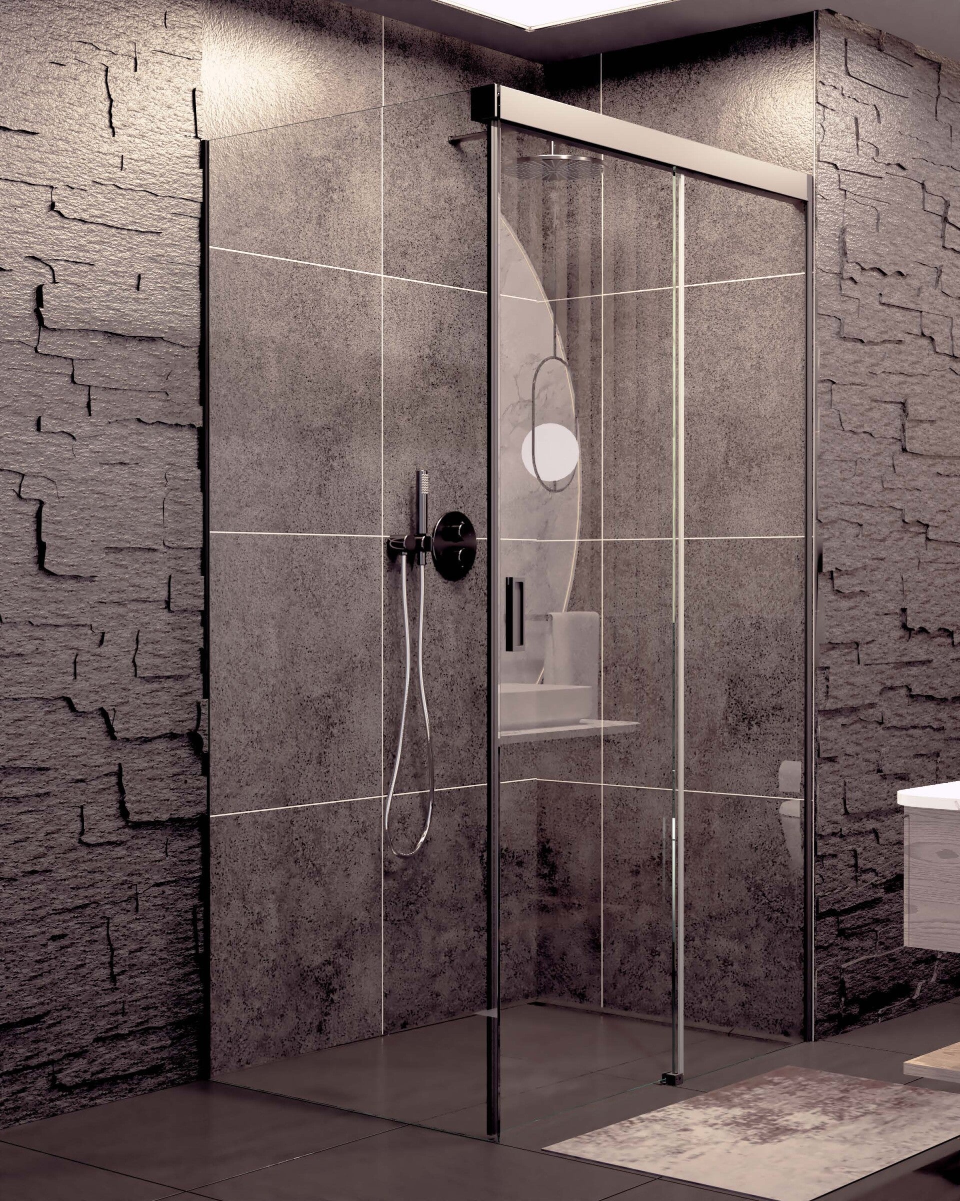 Dank des Sofclose-Systems müssen Sie sich keine Gedanken mehr über die Kraft machen, mit der Sie die Tür schließen oder öffnen. Der doppelte Softclose erledigt das für Sie. Dadurch bleibt Ihre Duschkabine immer in gutem Zustand. Das gesamte System befindet sich zusammen mit den Laufwagen unter dem dekorativen Aluminiumprofil.